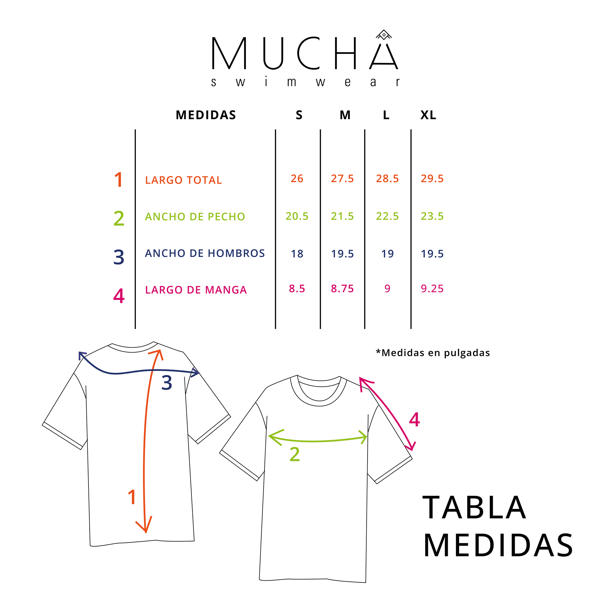 - Tallas: S, M, L y XL.